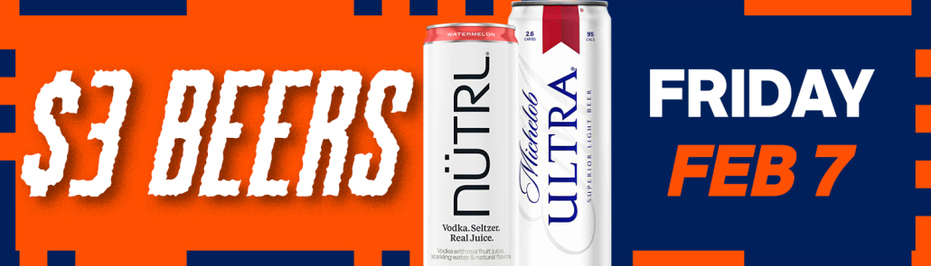 Friday is a $3 Beer Night presented by Sunny 105.3 FM and American Business Machines. Enjoy $3 Michelob Ultra and NUTRL at the game from doors open through the end of the first intermission.