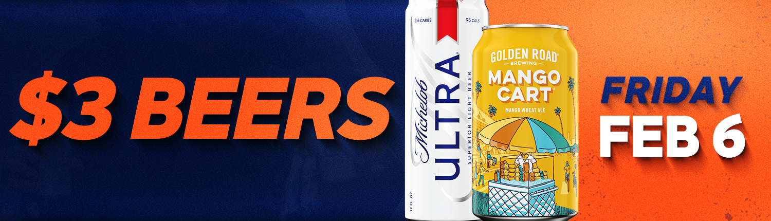 It’s a $3 Beer Friday with Michelob Ultra and Mango Cart just $3 from doors open through the start of the second period presented by 23ABC, 101.5 BIG FM, and Grapevine MSP.