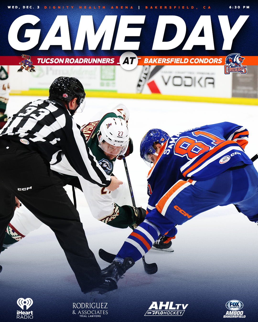 The Condors host the Tucson Roadrunners for the first time this season. Tucson took the first two games of the season series in Southern Arizona back in October.