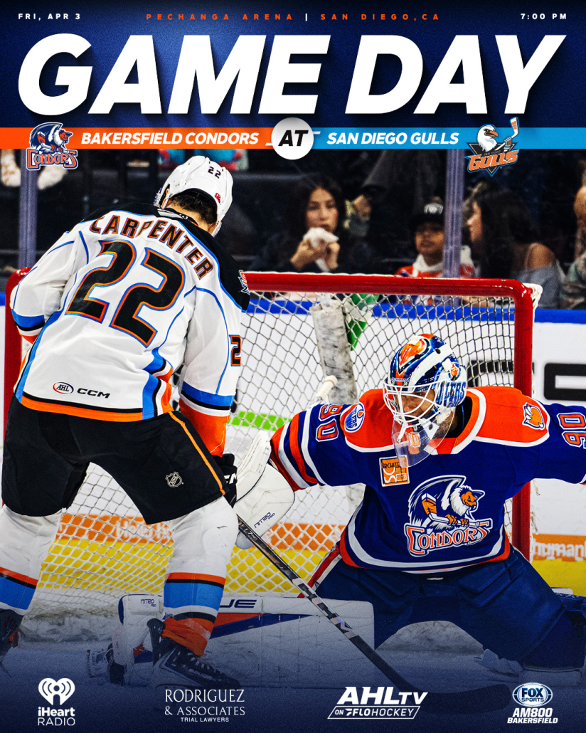 Bakersfield opens a Southern California road trip in San Diego. It is the sixth matchup of the season between the two teams as the Condors will play three of their final eight games of the regular season against the Gulls. San Diego has taken four of the first five matchups in the series.