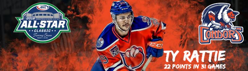 CONDORSTOWN, Calif. – The Bakersfield Condors announced today that leading scorer Ty Rattie has been selected to the 2018 AHL All-Star Classic presented by Turning Stone Resort Casino on January 28-29 in Utica, New York.