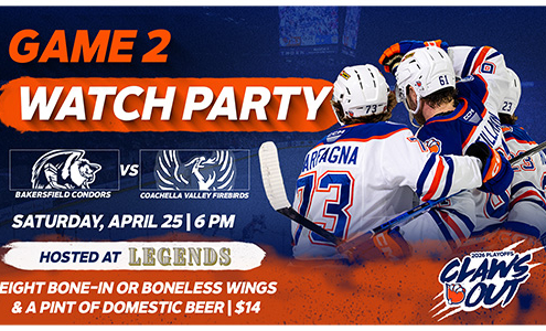 The Condors have locked up a 2026 Calder Cup Playoffs berth and are Claws Out for the Calder Cup. Playoff passes on sale now to secure your spot for the team's postseason run presented by Dignity Health, Mercy & Memorial Hospitals.